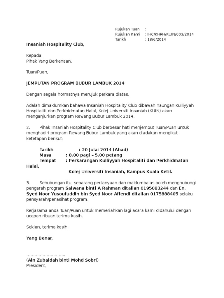 Contoh Surat Jemputan Program Hem Pdf